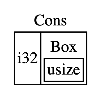 Quay lại với Cons List, bộ nhớ mà Rust tính toán được có thể đến vô tận.
